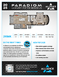 Step into the 2026 Paradigm 295MK and enjoy a stylish rear living area with a 50" smart TV, cozy fireplace, and plenty of comfortable seating—featuring seating that easily converts into comfortable sleeping areas for guests. This model features a smart mid-kitchen layout with plenty of storage, including a hidden pantry and soft-close cabinets. The kitchen is equipped with a residential microwave, a stove with oven, and a spacious refrigerator—everything you need for meal prep and storage.