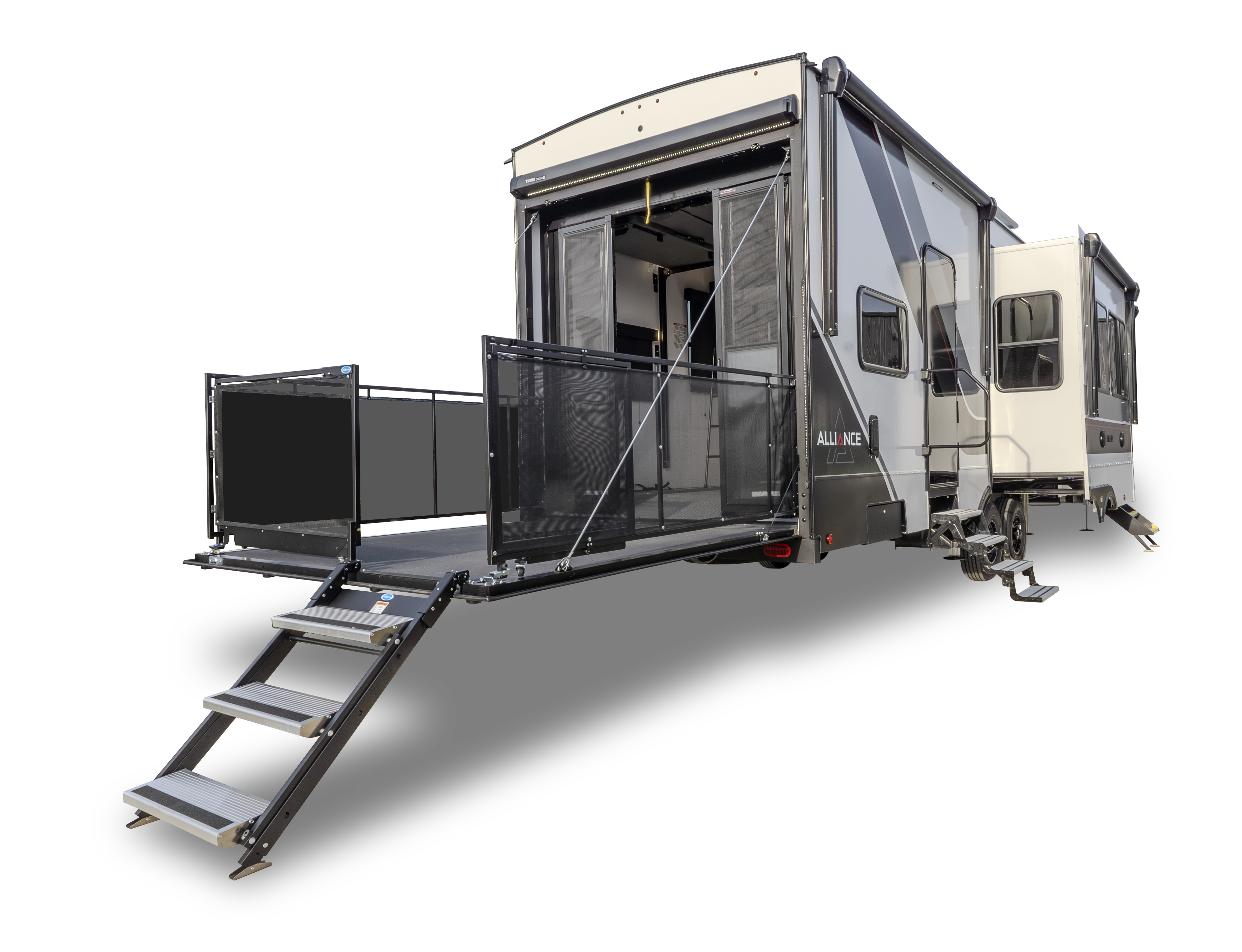 The Valor 36V11 toy hauler from Alliance RV is built to elevate your camping experience, combining rugged performance with luxurious comfort. With room for the whole family, this toy hauler features an 11' garage with an 8' weather-resistant ramp door, perfect for loading up your dirt bikes, ATVs, or other off-road gear. You'll also appreciate the dual 30-gallon fuel tanks, so you can keep your toys fueled and ready for adventure all weekend long.