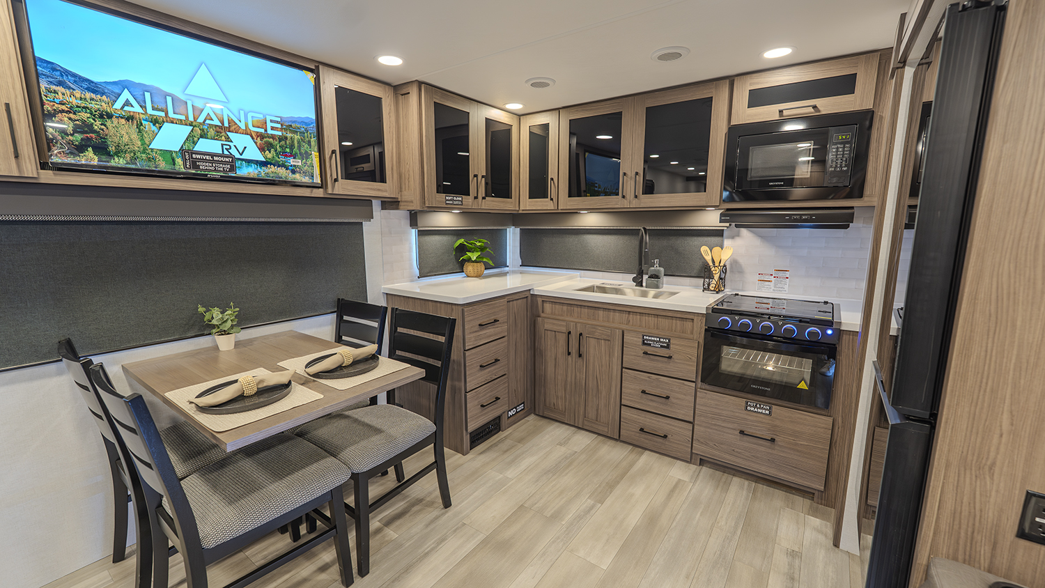 - Entertainment Ready – 40” swivel TV perfectly positioned for viewing from the theater seats or dinette.