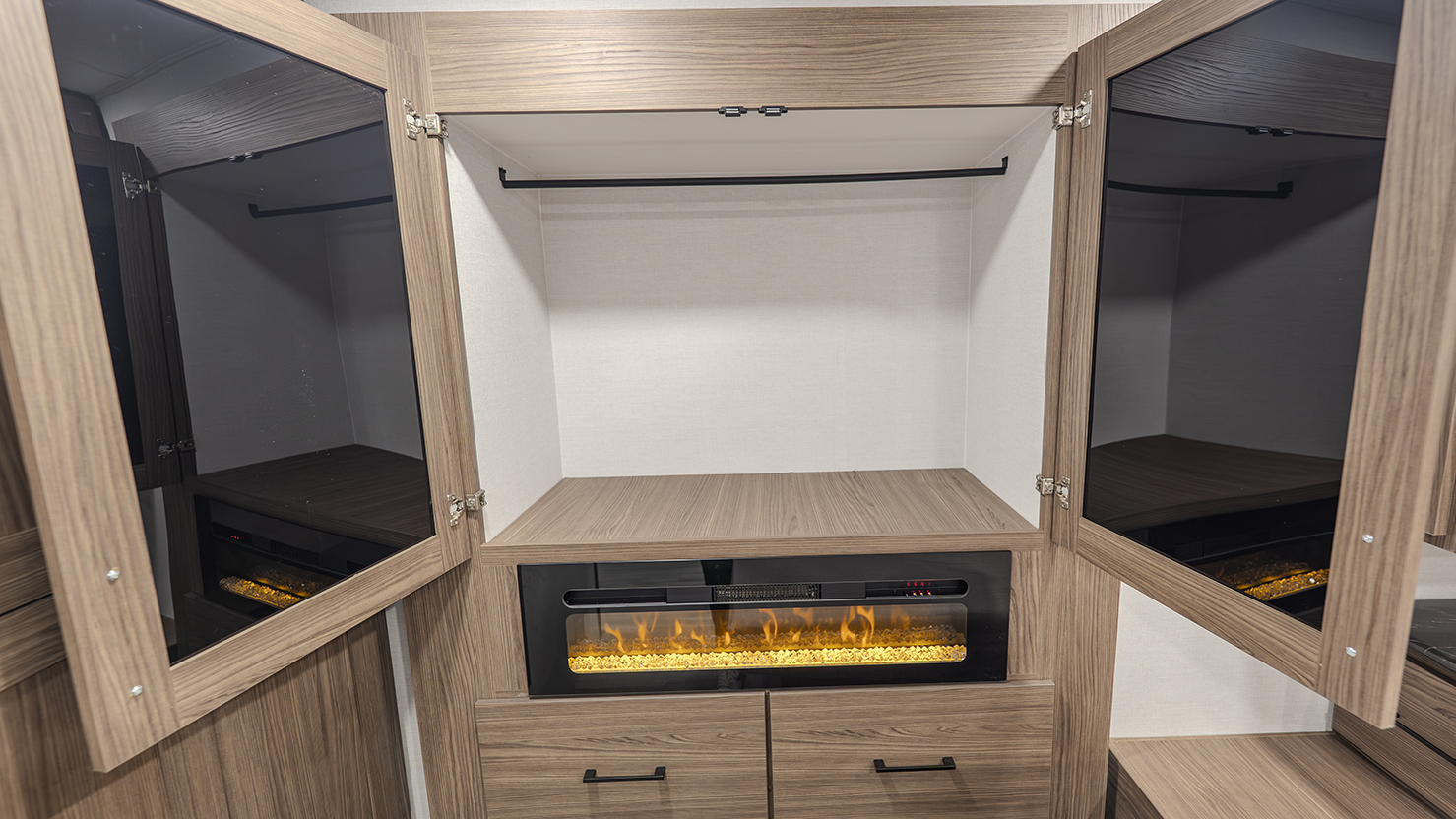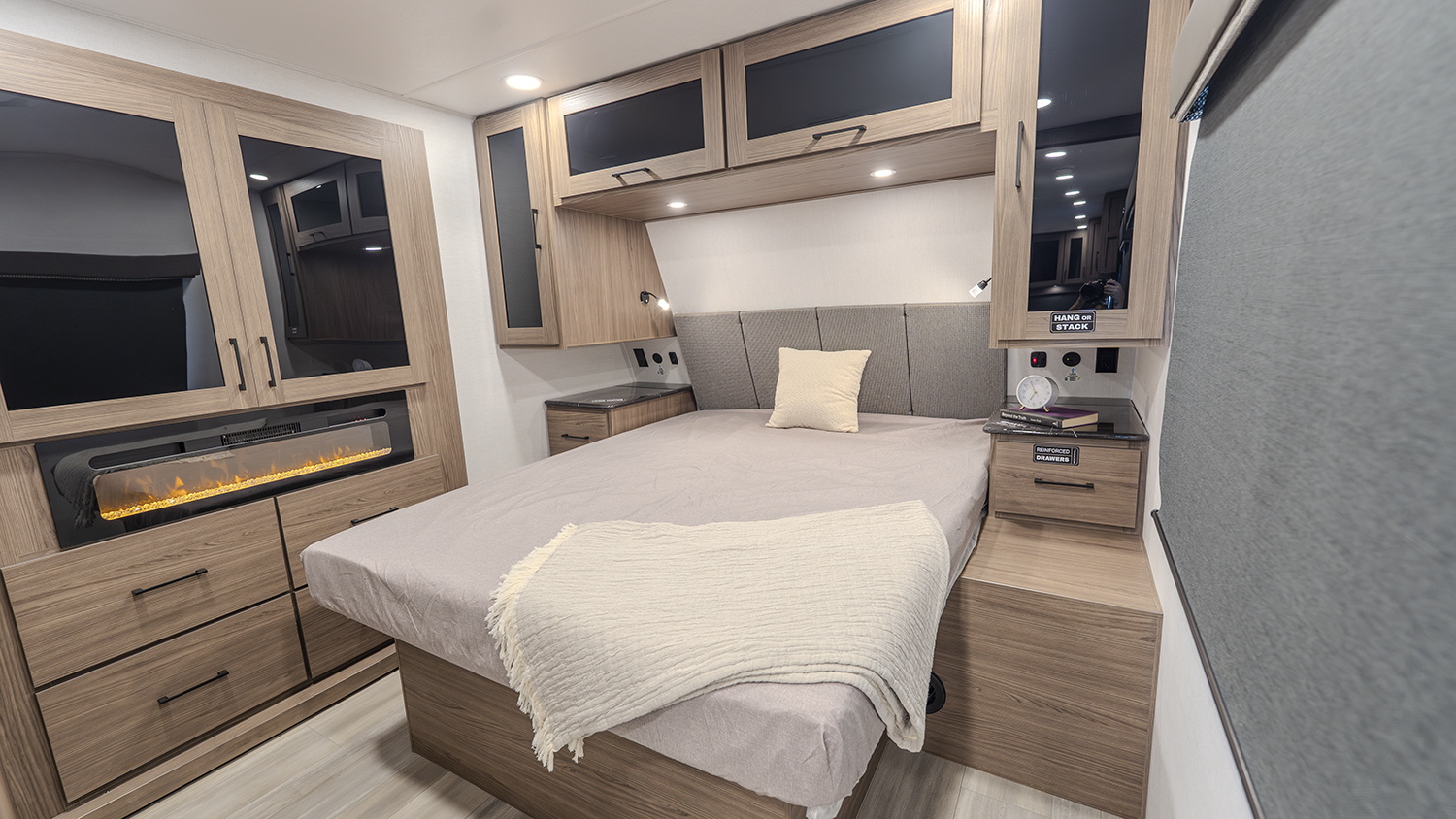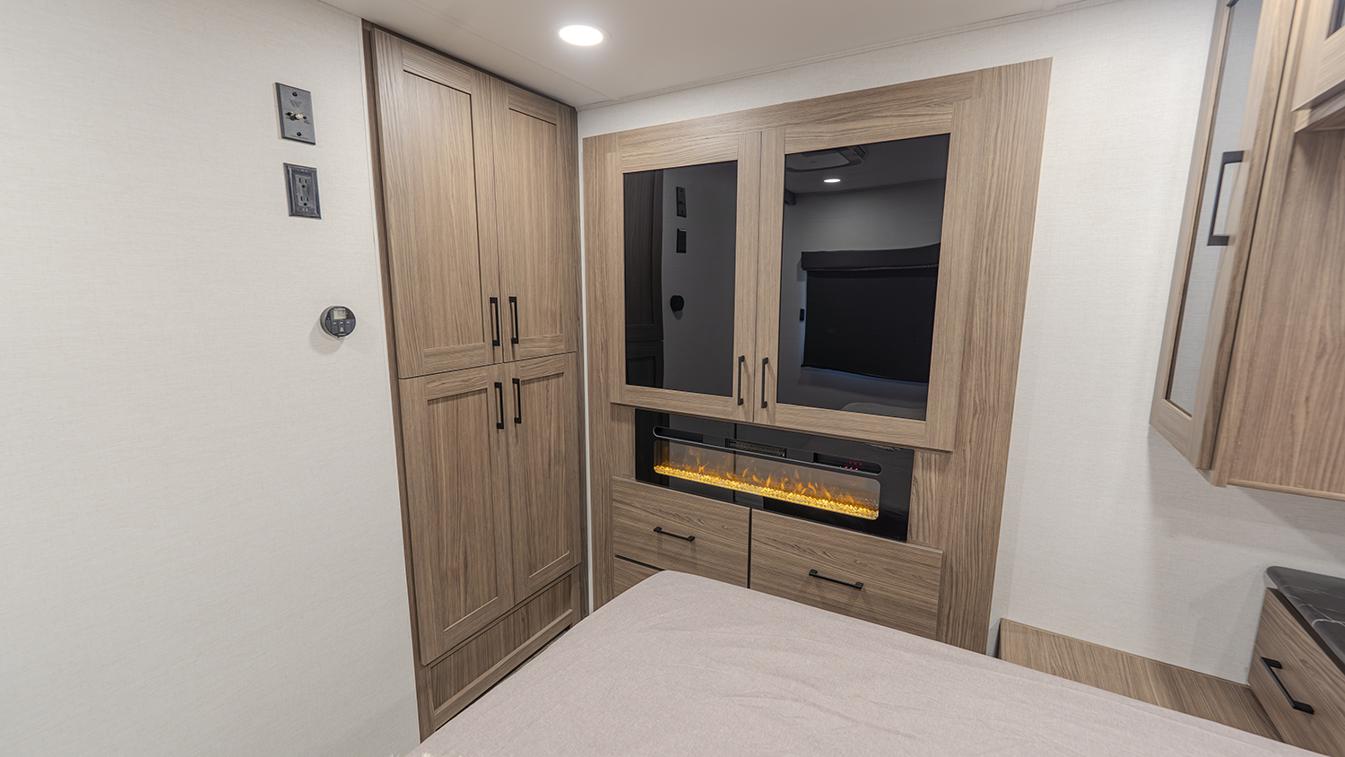 - Private Bedroom Retreat – 60” x 80” queen bed, a wardrobe fireplace, and washer/dryer prep for extended stays.