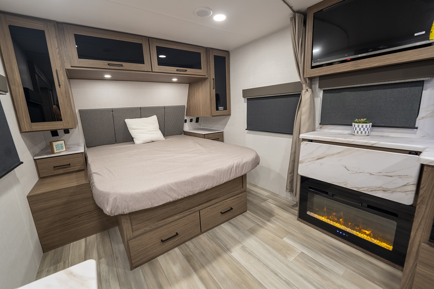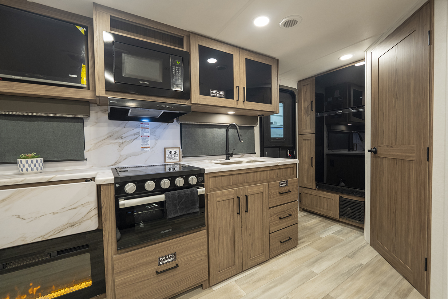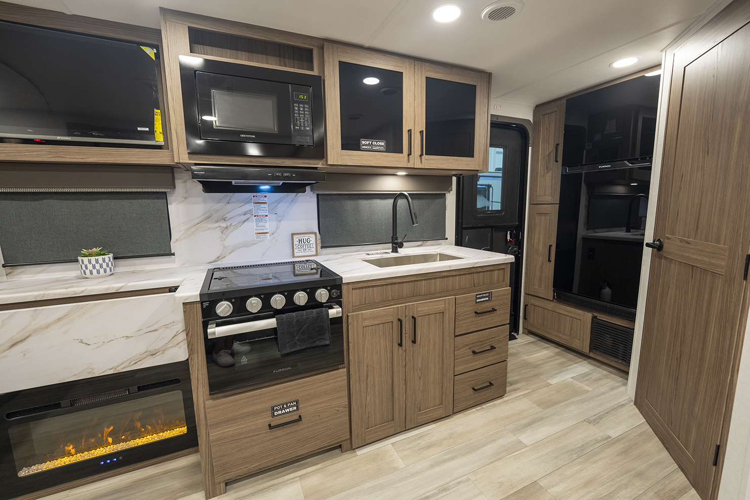The Alliance RV Delta Ultra Lite travel trailer ML206 is a couple's perfect weekend getaway option with a front queen bed, full bath, and entryway closet for convenience. The theater seat slide and fireplace provide comfort. The kitchen features a pantry, three-burner cooktop, and large sink for easy meal prep and cleanup. The full bath includes a toilet, sink, shower, and linen closet. Storage options include dual wardrobes, nightstands, and overhead storage. Delta Ultra Lite trailers are lightweight with oversized atrium windows, carpet-free interiors, and modern features like magnet catches, soft close doors, and LED accent lighting. Exterior features include pass-through storage, multiple spray ports, awning controls, and Goodyear Endurance tires for a seamless outdoor experience. Start your adventure today with a Delta Ultra Lite travel trailer!