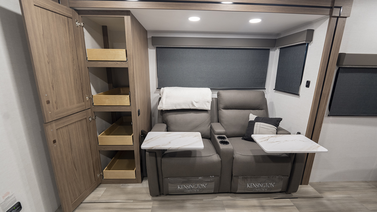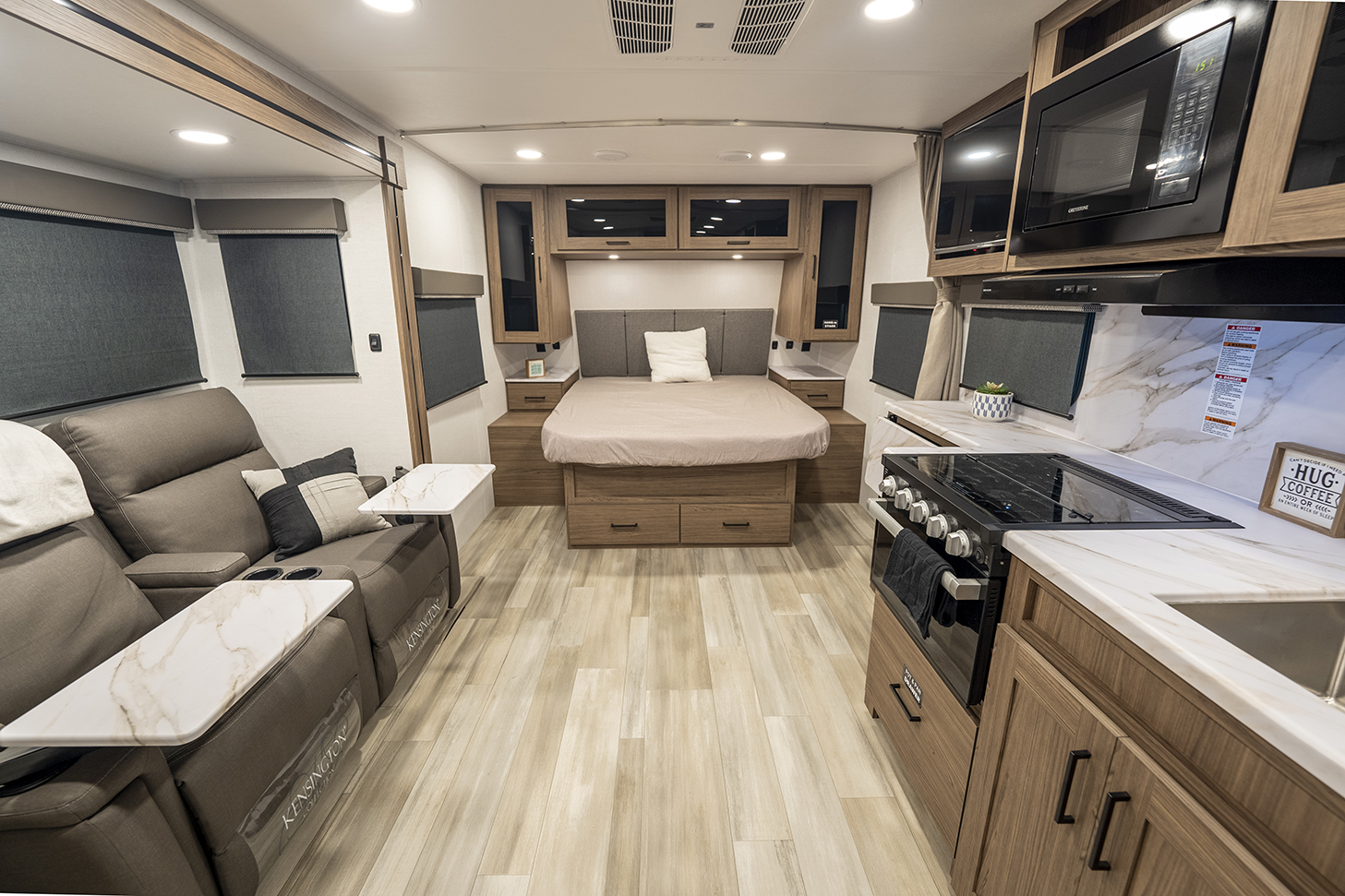 The Alliance RV Delta Ultra Lite travel trailer ML206 is a couple's perfect weekend getaway option with a front queen bed, full bath, and entryway closet for convenience. The theater seat slide and fireplace provide comfort. The kitchen features a pantry, three-burner cooktop, and large sink for easy meal prep and cleanup. The full bath includes a toilet, sink, shower, and linen closet. Storage options include dual wardrobes, nightstands, and overhead storage. Delta Ultra Lite trailers are lightweight with oversized atrium windows, carpet-free interiors, and modern features like magnet catches, soft close doors, and LED accent lighting. Exterior features include pass-through storage, multiple spray ports, awning controls, and Goodyear Endurance tires for a seamless outdoor experience. Start your adventure today with a Delta Ultra Lite travel trailer!